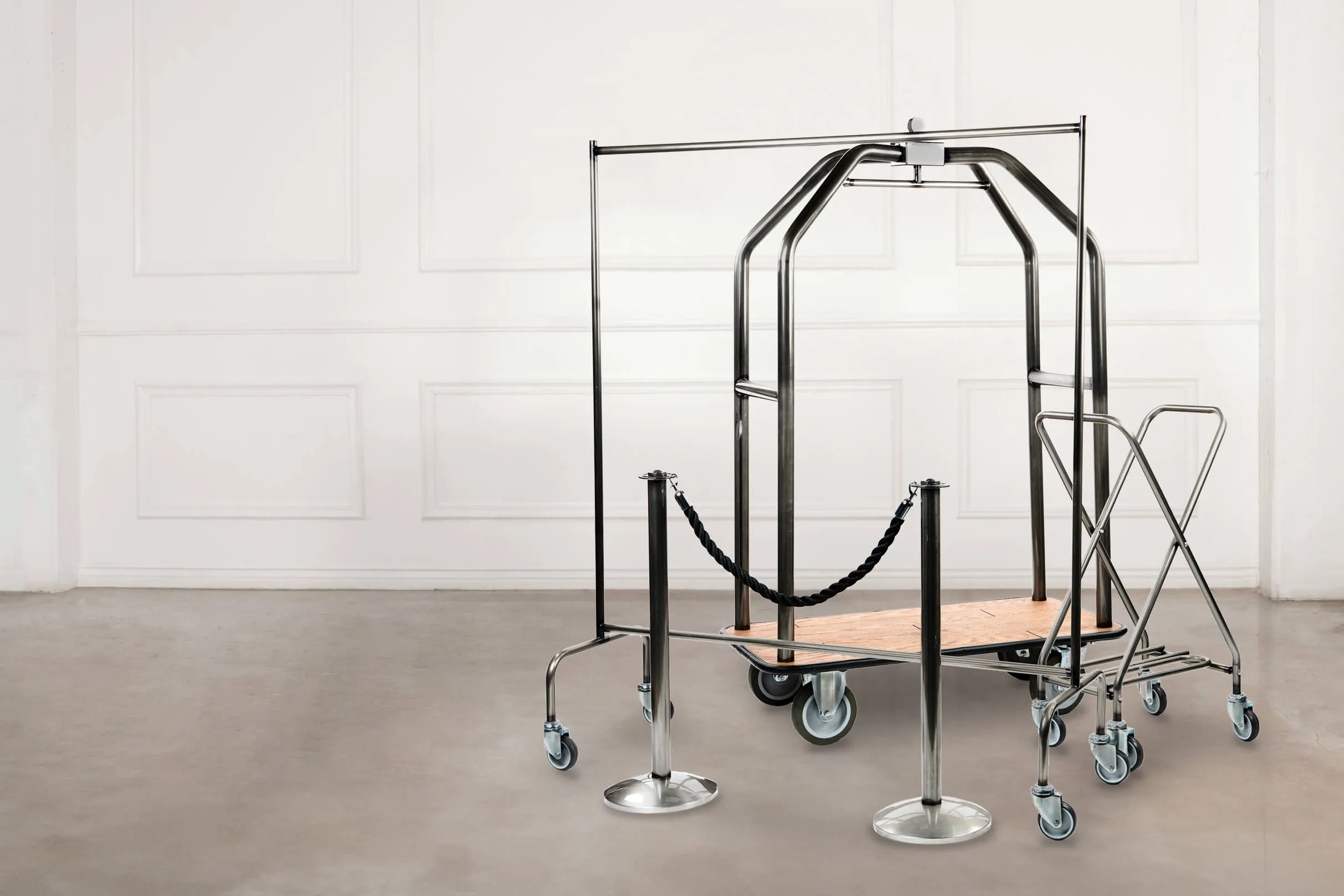 As the leading UK manufacturer of hotel trolleys and supplies for over 50 years, you can find everything from luggage trolleys and housekeeping trolleys, to mobile hot stands and cocktail carts. We've supplied the best in the business, including the likes of The Ritz Hotel, London, The Dorchester Hotel, London, and St. Andrews Old Course Hotel, Scotland.